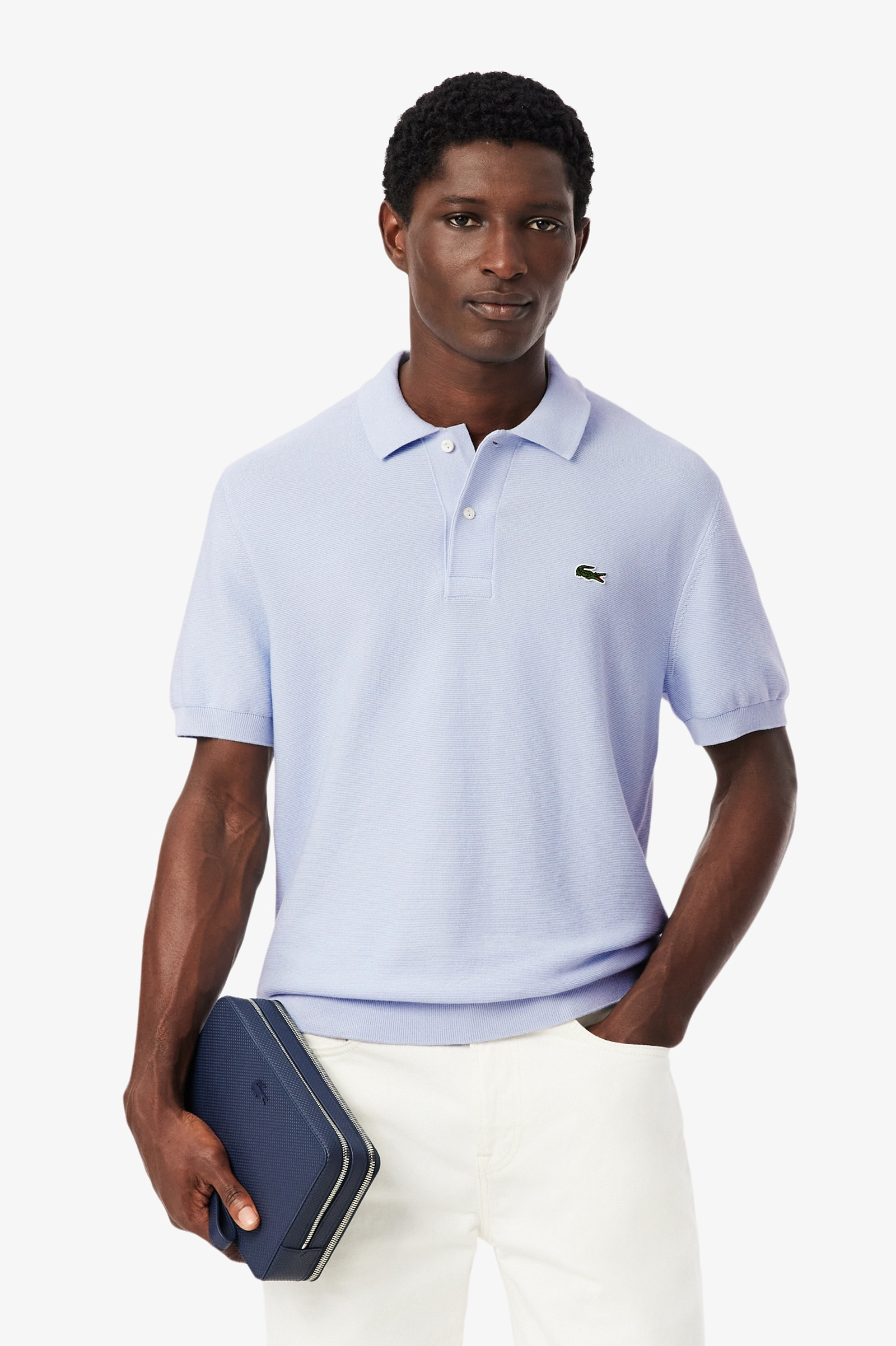- Sewn-on embroidered crocodile on chest